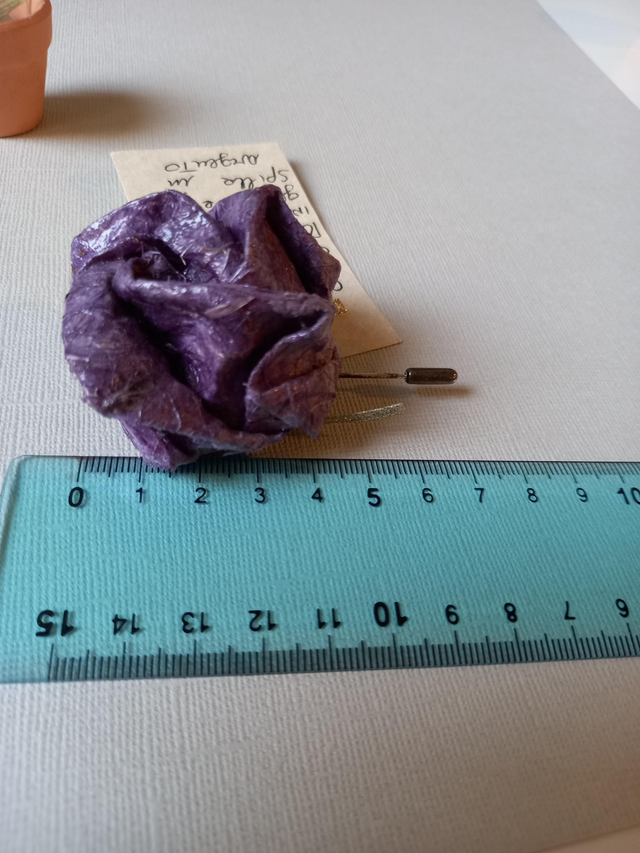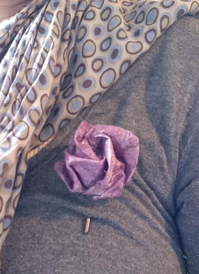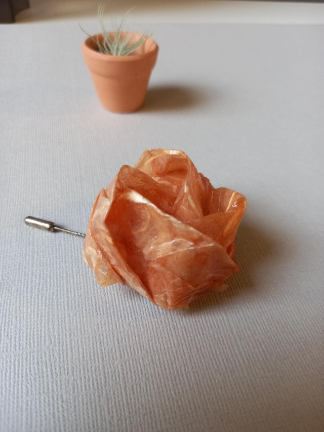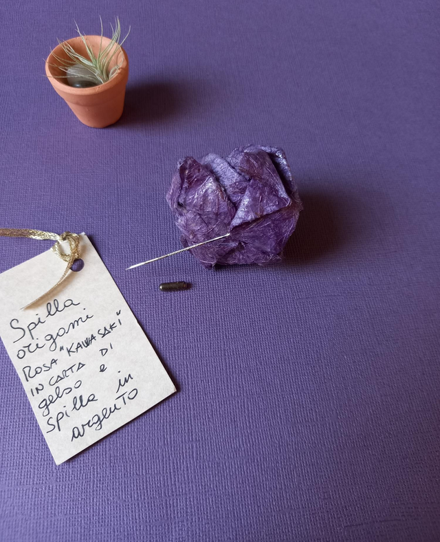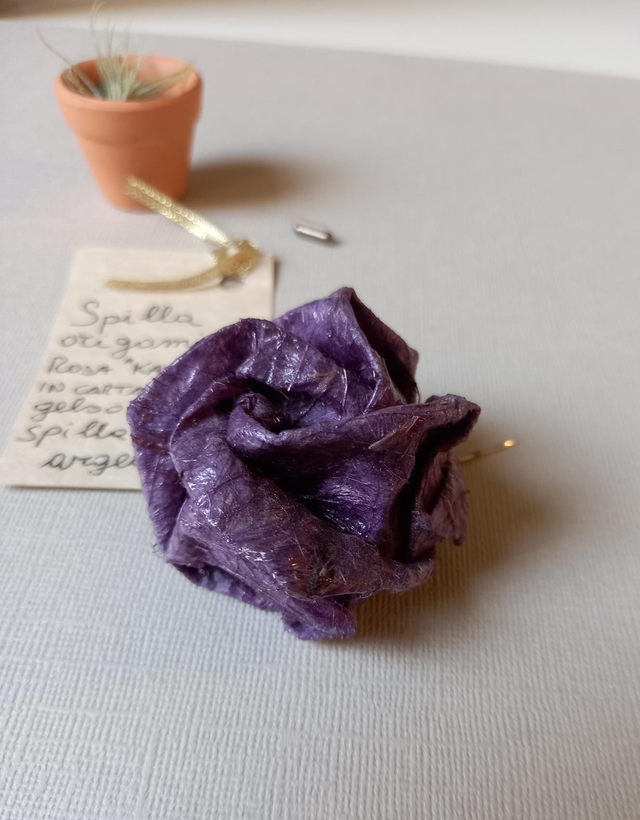 Spilla origami "rosa Kawasaki" in carta di gelso. Spillone in argento 925.